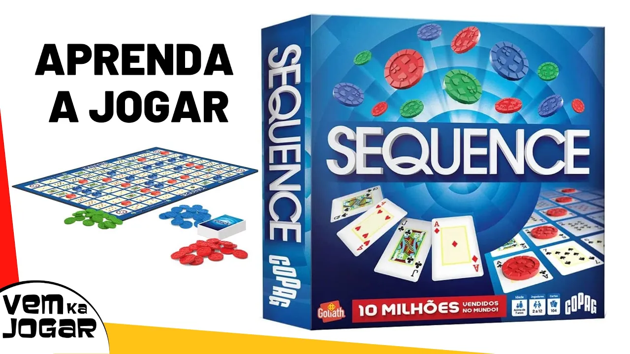 Sequence é um jogo de tabuleiro e de cartas. O tabuleiro mostra todas as cartas (exceto os valetes) de 2 (dois) baralhos de 52 cartas padrão, estabelecidas em um padrão de 10 x 10. Os quatro cantos são espaços livres e contam para todos os jogadores de forma igual.